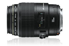 Autofocus lens for macro photography up to life-size (1x) magnification. Inner focusing affords a long working distance of 5.9 in. / 149mm at 1x. A 3-group floating system results in excellent delineation at all focusing distances. Ring USM for silent and high-speed AF, and full-time manual focusing also provided.
