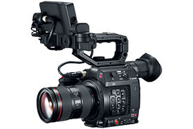 The EOS C200 Digital Cinema Camera is a "ready-to-go" production camera that comes with a built-in electronic viewfinder and an array of accessories including a 4-inch touch screen LCD monitor, a versatile handle and ergonomic handgrip.