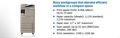 | Type | Color Digital Multifunction Imaging System Letter: Up To 25/25 Ppm Legal/11" X 17": Up To 15 Ppm |