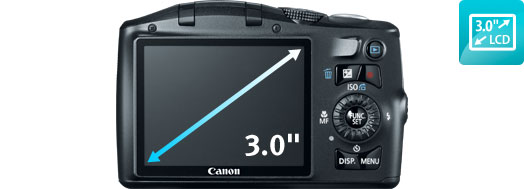 The camera's high-resolution (230,000 dots) 3.0-inch LCD gives you the big picture, whether you're shooting, reviewing or showing off your images. This high-resolution screen offers a crisp, clear picture to make shooting, playback and using the camera's menu functions especially convenient. Clear and bright, it also features Night Display for easy viewing in low light.