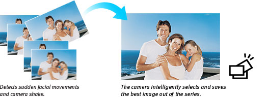 Best Image Selection* is an easy way to get great results almost every time you take a picture. When you press the shutter release, the camera will rapidly shoot a series of five images, then assess the images for any unwanted facial movements and camera shake. Out of the five images, the camera will select and save the best one.