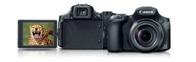 The PowerShot SX60 HS camera gives you lots of ways to frame a great shot. The bright 3.0-inch Vari-angle LCD has excellent resolution (approximately 922,000 dots), and flips out and swivels/rotates for shooting at unusual angles, even letting you capture perfectly framed self-portraits. The camera also has an Electronic Viewfinder (approximately 922,000 dots) to easily see subjects when using the camera in very bright sunlight, or preventing camera shake by holding it steadily.